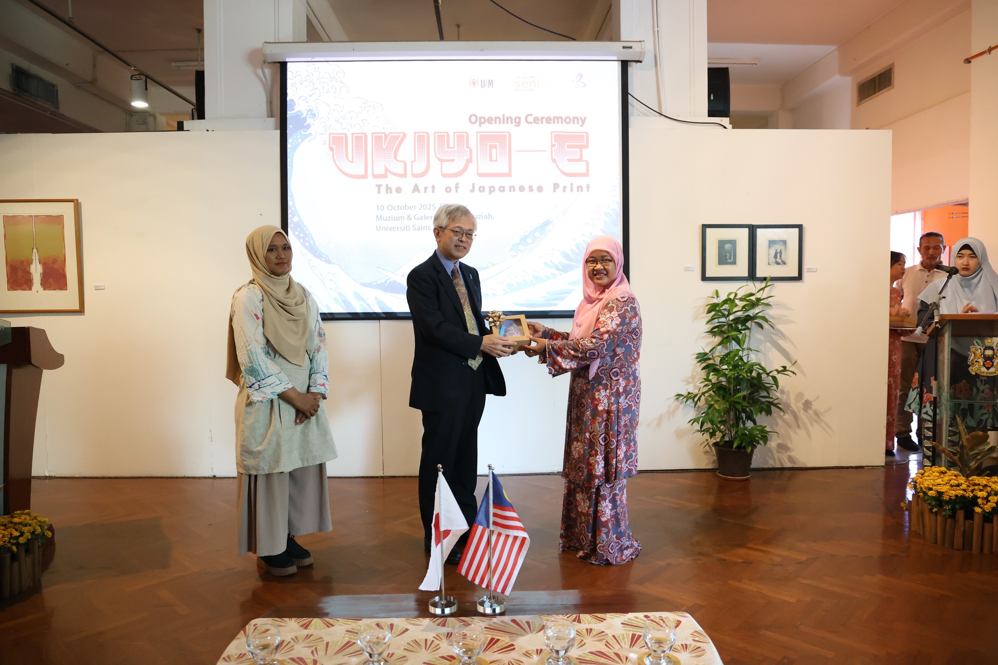 Majlis Perasmian Pameran “Ukiyo-E: The Art of Japanese Print” telah berlangsung dengan jayanya pada 10 Oktober 2025, jam 3.00 petang di Muzium & Galeri Tuanku Fauziah (MGTF), Universiti Sains Malaysia (USM).
