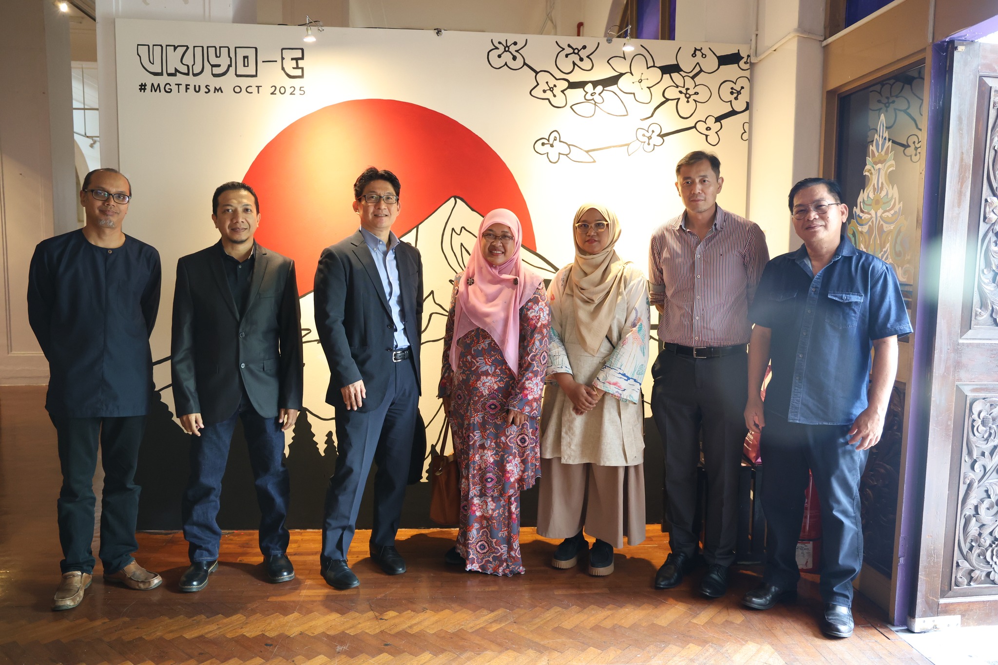 Majlis ini telah disempurnakan oleh Yang Berbahagia Tuan Machida Shinya, Konsul Jeneral Jepun di Pulau Pinang. Turut hadir ialah Profesor Dato’ Gs. Dr. Narimah Samat, Timbalan Naib Canselor (Akademik dan Antarabangsa) USM; Dr. Tetriana Ahmed Fauzi, Pengarah MGTF USM; serta Prof. Madya Dr. Safrizal bin Shahir, Pengarah Projek Pameran “Ukiyo-E: The Art of Japanese Print.”