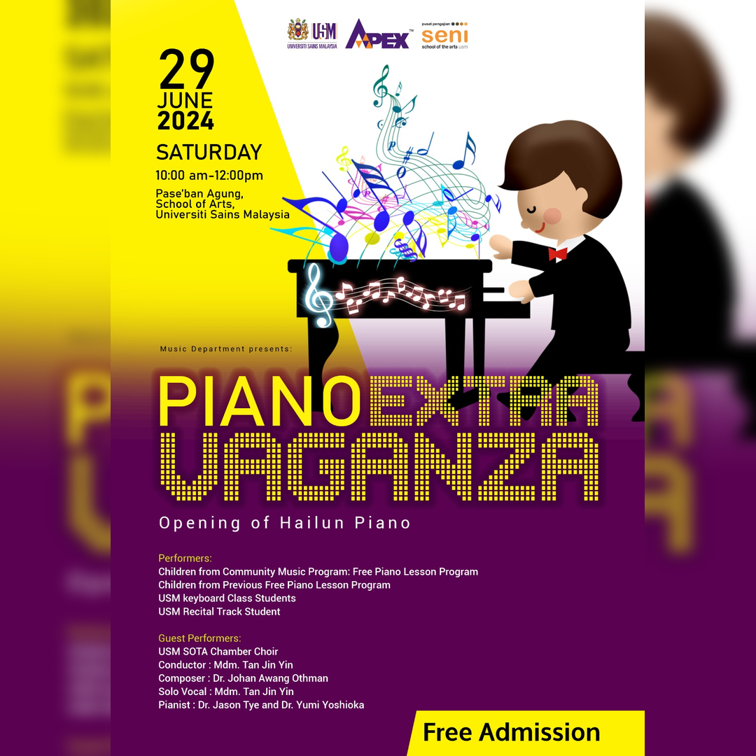 Come experience the magic of the @hailunpianomalaysia at our Piano Extravaganza, featuring performances by talented children from our Community Music Program, USM students, and special guest performers. Don't miss this delightful event at School of The Arts USM.